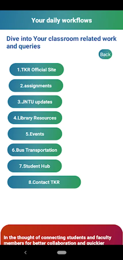 Fluid makes your work easy and loving , it is a personal note app , it helps students and faculty members with quicker workflows , the fluid app helps individuals to get better access to college resources such as library , exam registrations and important notifications in TKR college campus and JNTUH campus.
