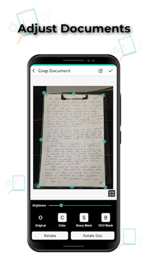 By using the scanner, you can scan and save all kinds of documents, for example, PDF scans, Certificates, Business cards, ID cards, Invoices, Notes, Academic Docs, All kinds of Paper Documents, and Receipts.