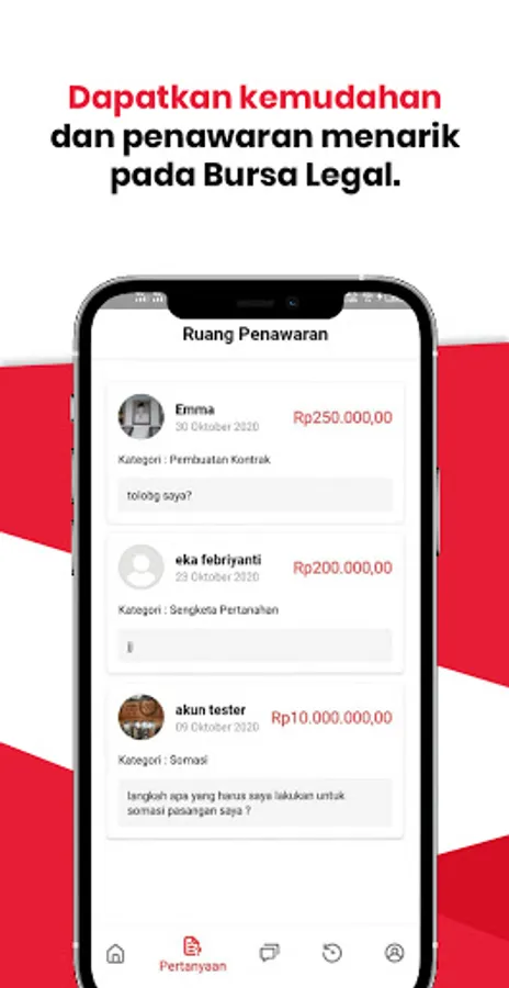 The Legal Exchange has complete legal services that you can choose according to your field. The process of registering for the Legal Exchange application is easy. Not only that, the Legal Exchange is also equipped with an offering room that will make it easier for you to communicate with clients.