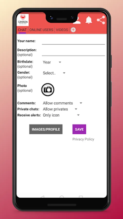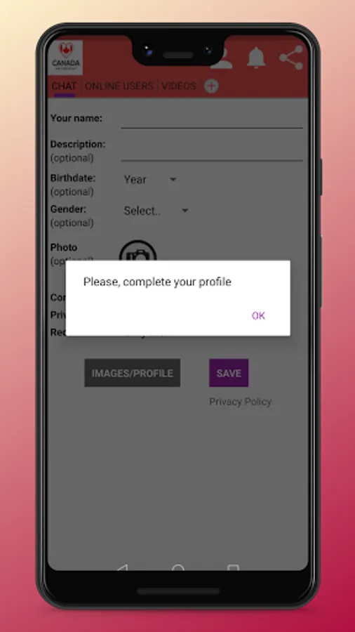 The Sign-up process is very simple. You will have just to enter your name, gender, date of birth, hobbies and write an optional description if you want to. It is recommended to write a description so that other members know what you are looking for.