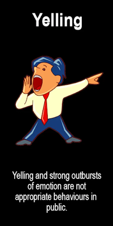 >> Yelling and strong outbursts of emotion are not appropriate behaviors in public.