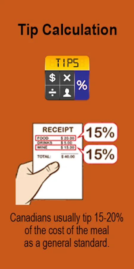 >> Canadians usually tip 15-20% of the cost of the meal as a general standard. More or less can be tipped depending on the quality of the service; if it was so awful that you would never eat there again, you may leave a tip of 2 cents. Doing so shows that you did not forget to tip and were bitterly unimpressed.