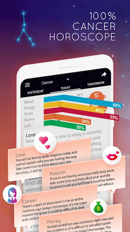 Get your personalized free Cancer horoscope prepared by expert astrologists. Discover your future in love, work, money and health. This free daily horoscope is dedicated to Cancer , who can be described as diplomatic, passionate, impulsive and selective.
