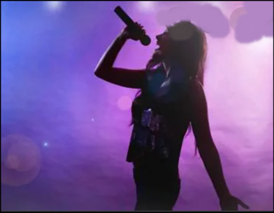 Karaoke music with lyrics and voice to sing on a concert stage and thrill the audience.