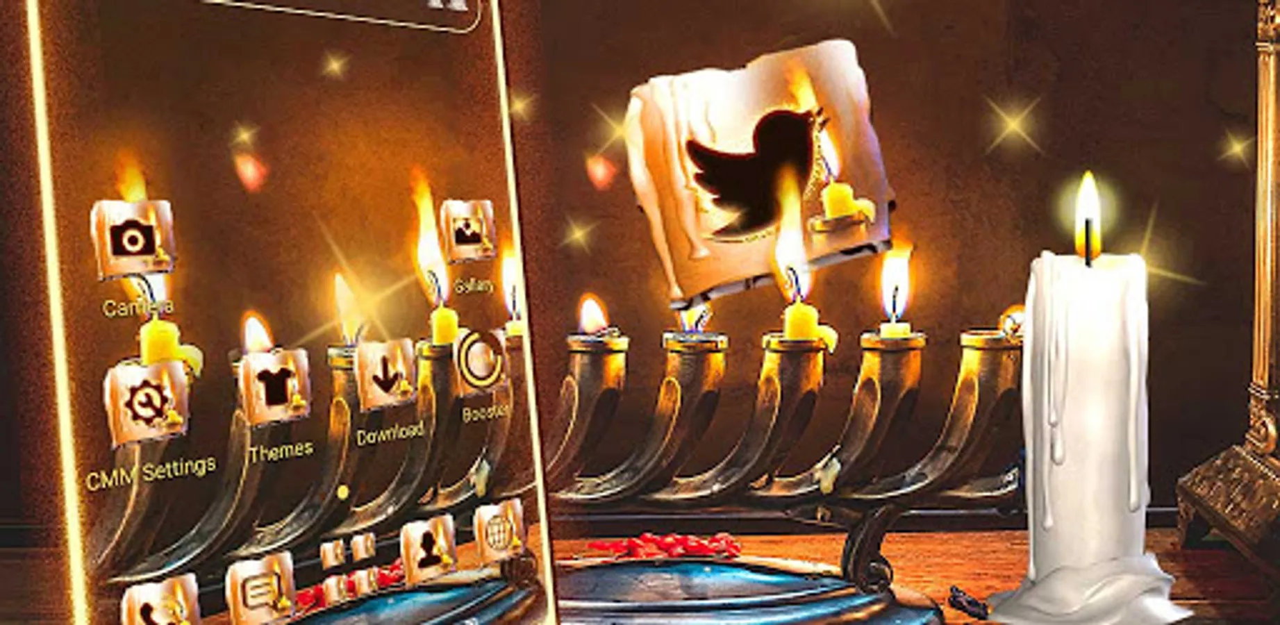 The smooth and attractive redesigned app icons and other visual elements of this Candle Prayer Launcher theme will change the way your smartphone looks. You can even use an awesome Candle wallpaper for your phone, which will give your device a fantastic new look.
