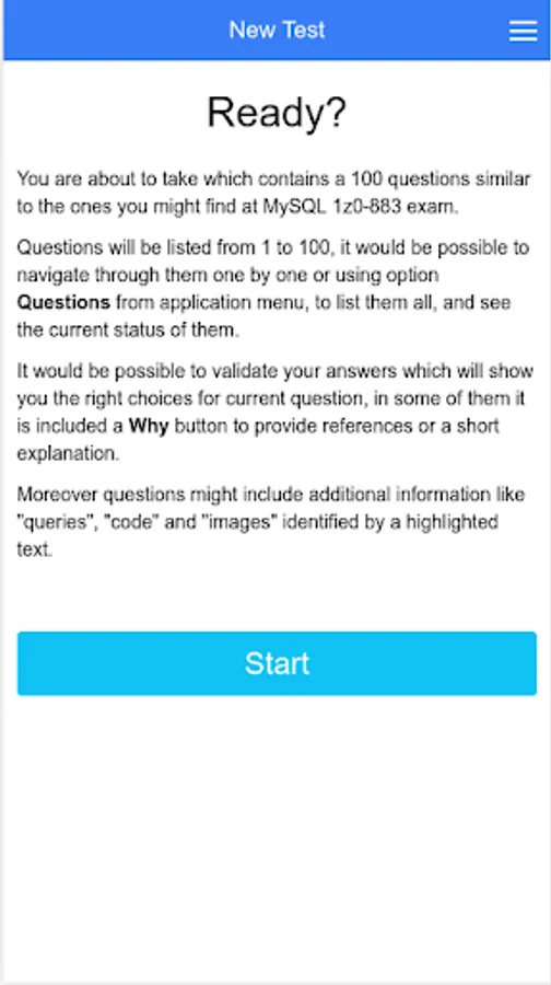 This app contains a test suite of 10 questions aiming the preparation of MySQL 1z0-883 Certificate. You will find answers and little explanations for most of them.