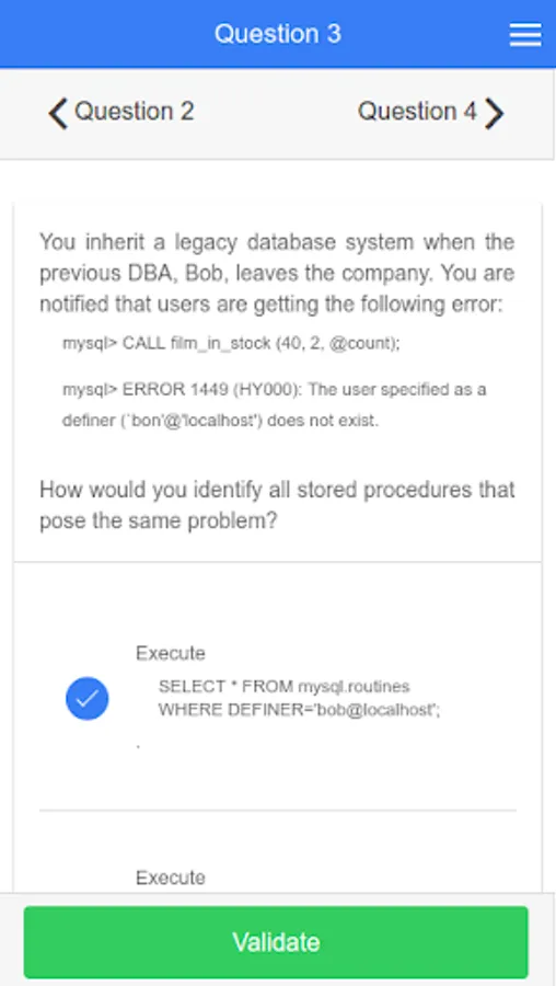 This app contains a test suite of 100 questions aiming the preparation of MySQL 1z0-883 certificate. You will find answers and little explanations for most of them.