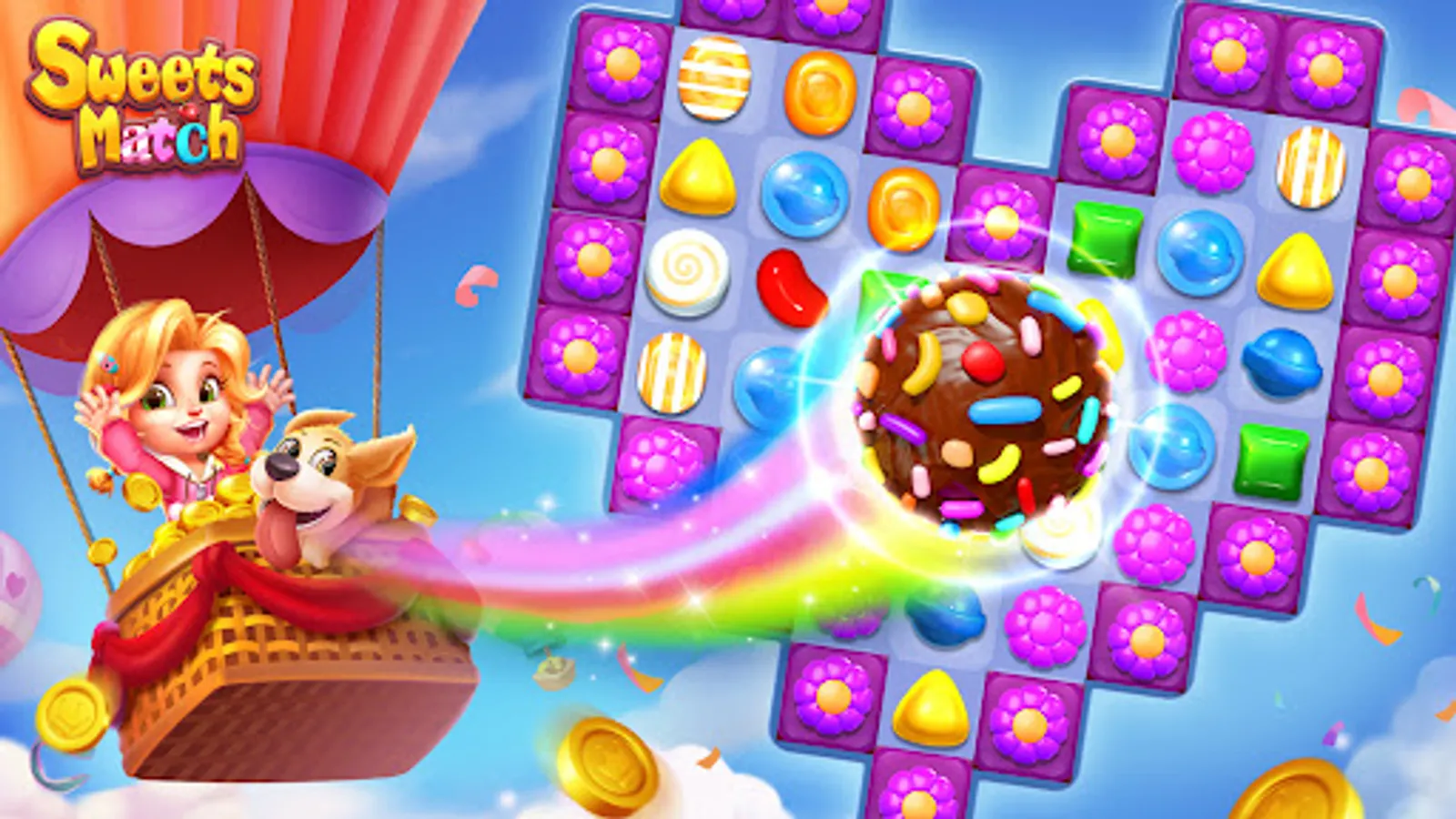Play Sweets Match Enjoy fun match 3 free games! You can enjoy thousands of candy match 3 games for free. Sweets Match is a match 3 games designed to relieve stress. And we will regularly add new levels. Do not hesitate, begin your journey and play this free games now!