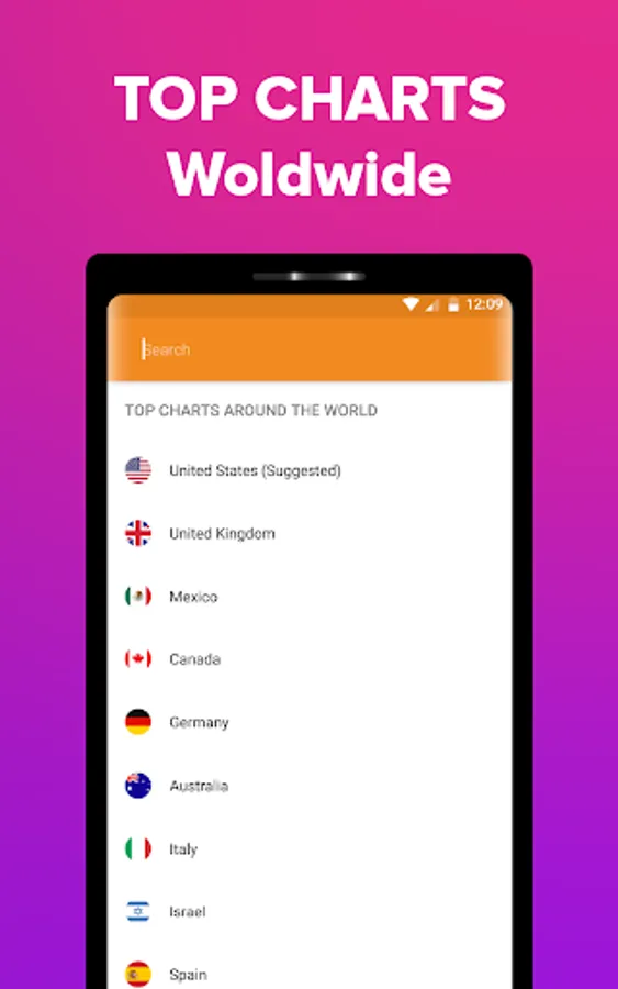 • Browse the daily Top Charts songs: USA, Brazil, UK..