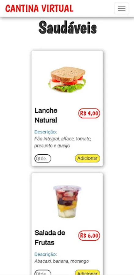 The Virtual Cantina allows you to place your orders or those of your children directly through the website, being able to choose the product, the quantity and the way in which the order will be delivered inside the school.
