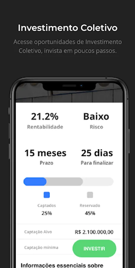 > Access Collective Investment opportunities with one click, read all the information needed to make a decision, invest directly through the app, join exclusive groups to ask questions and talk to other investors.