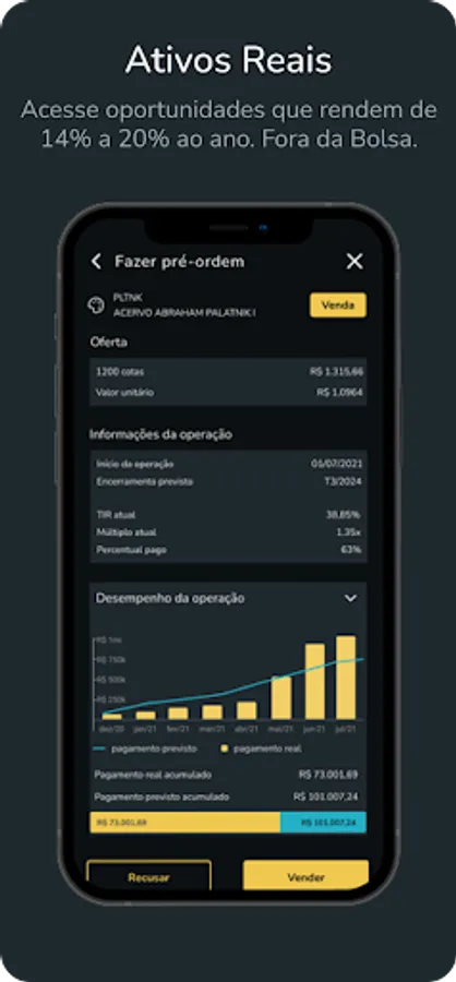 > Have it all in the palm of your hand with smart reports and dashboards for your investments. Check the progress of your operations anywhere, anytime, just using an internet network.