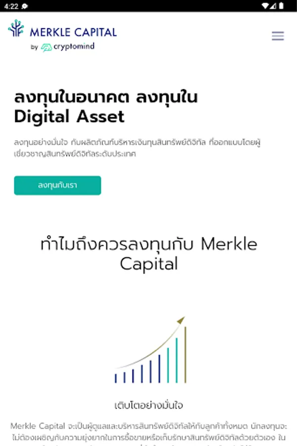 Merkle Capital is Thailand's first digital asset fund manager affiliated with Cryptomind Group. The company provides clients with sustainable and secure digital asset investment management and diversification strategies.
