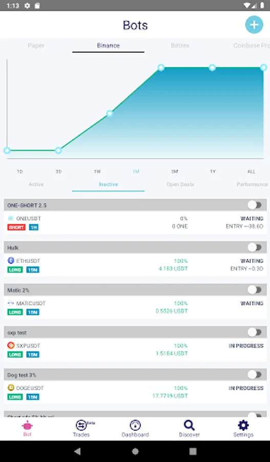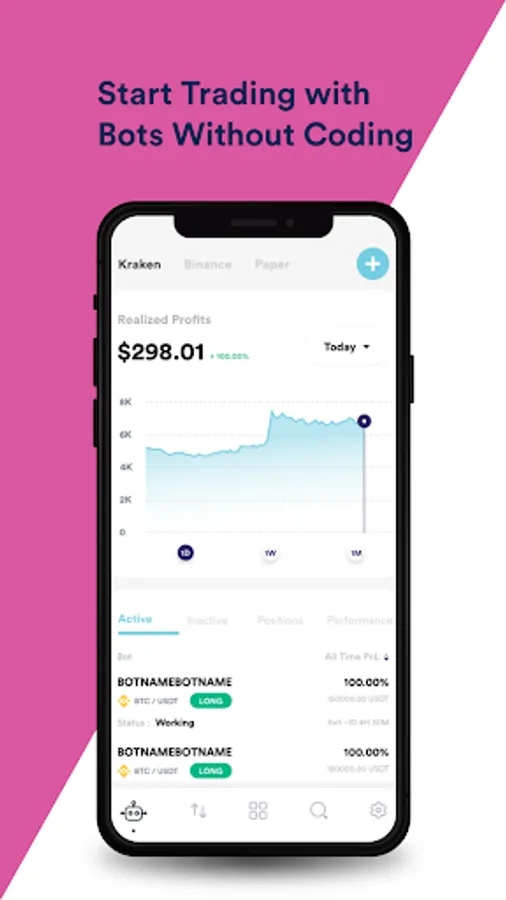 5. Paper Trade: Fear of losing real cash? Fear not. CryptoHero users can apply their strategies on paper trades. Bots can be deployed live on Paper exchange in order to test the bot's performance in real life. 100% risk-free.