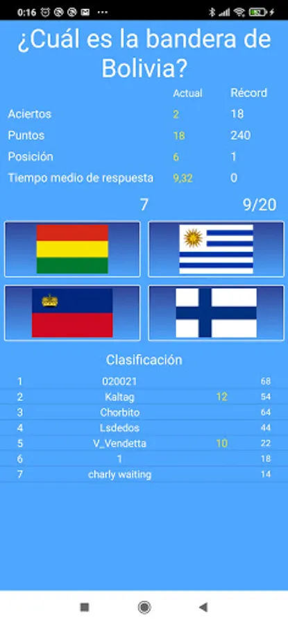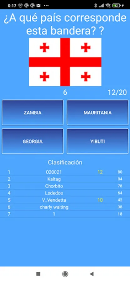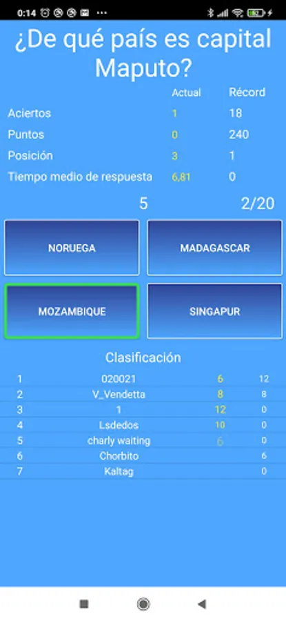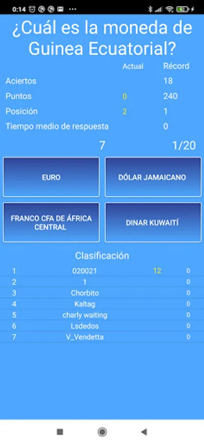 The user who answers the fastest correctly will receive 12 points, the second fastest 10, the third 8 and the rest 6. The user who, at the end of the 20 rounds, has the highest number of points will win the game.
