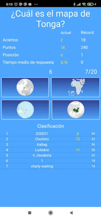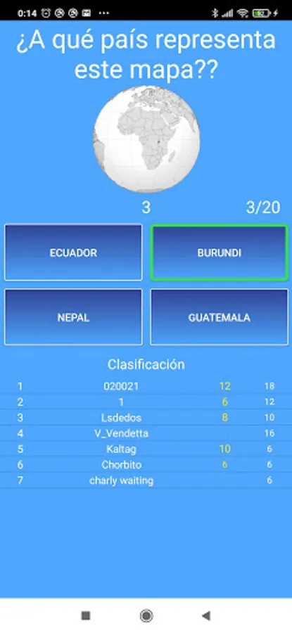 Each game consists of 20 questions about geography from all the countries of the world. Questions will be asked about maps, flags, currencies, capitals, areas and population