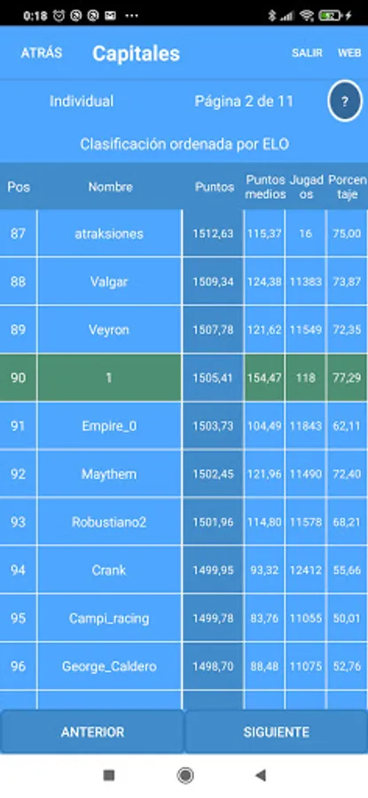 Once the game is over, to calculate the global ranking, a system based on ELO will be used, considering that the user has won all the users who are below him in the ranking and has lost with all those who have been ahead.