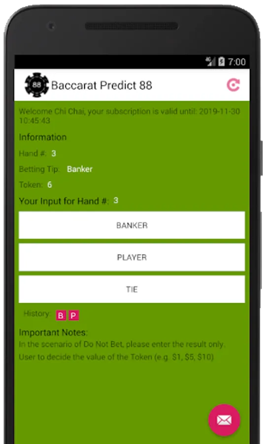 In order to start using Baccarat Predict 88, you are requested to purchase either a 7-day or 30-day subscription from the our website https://capp.asia after registration.