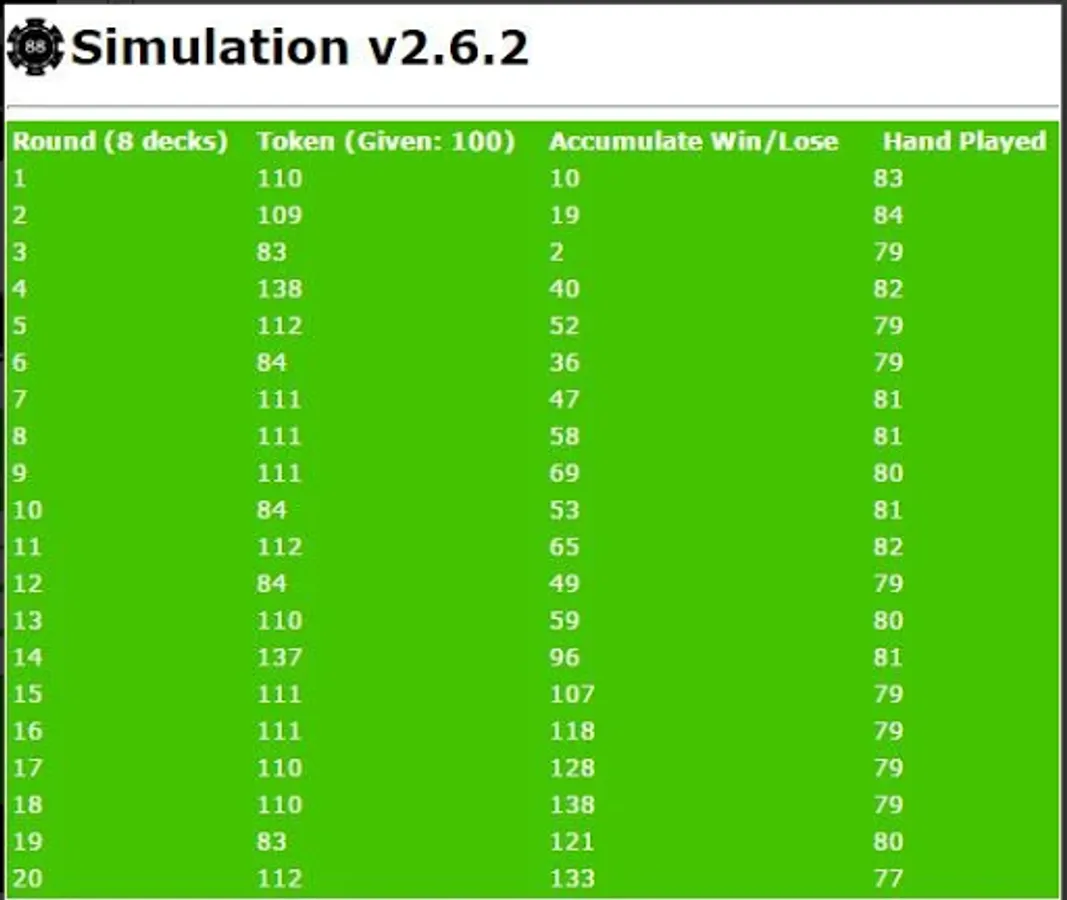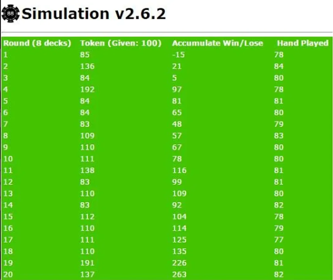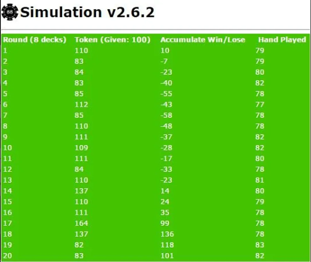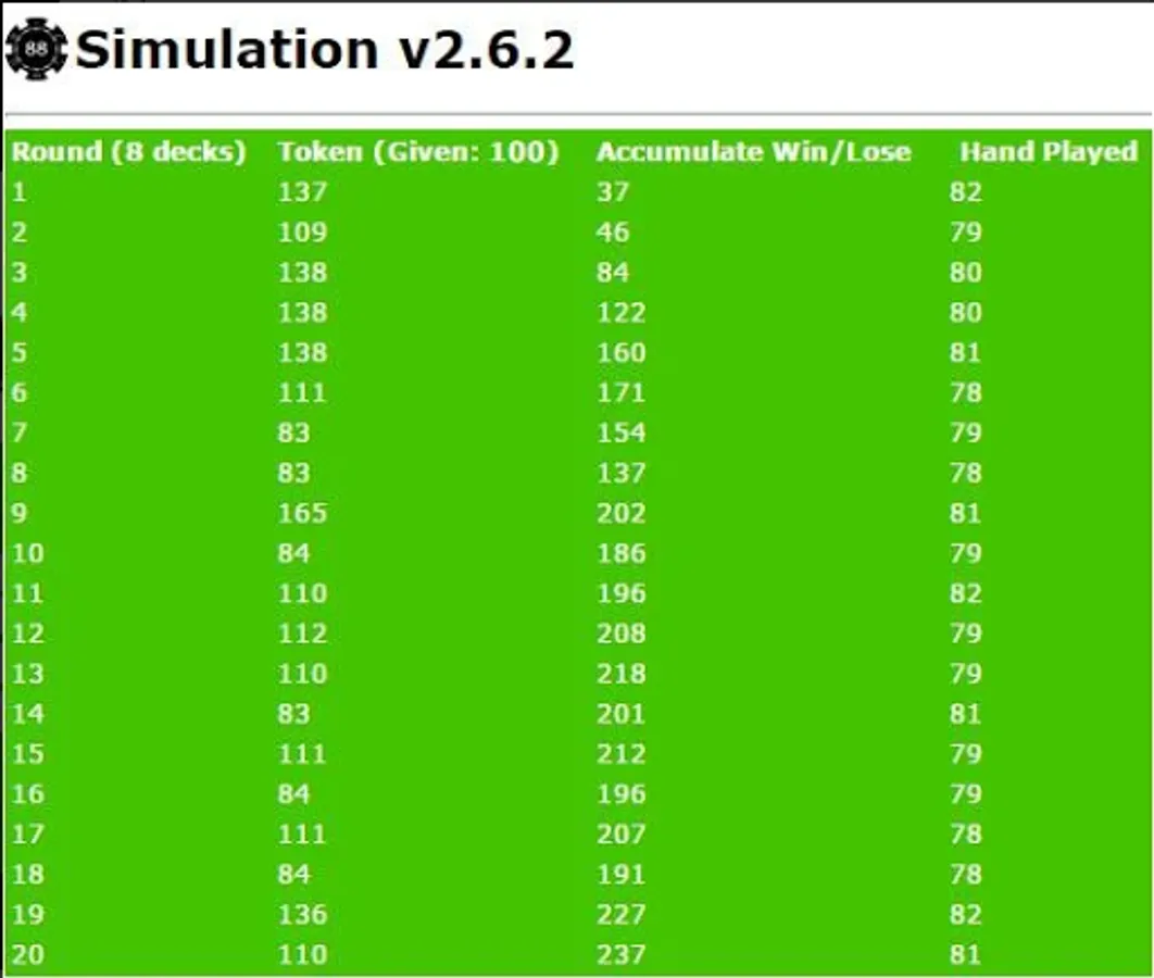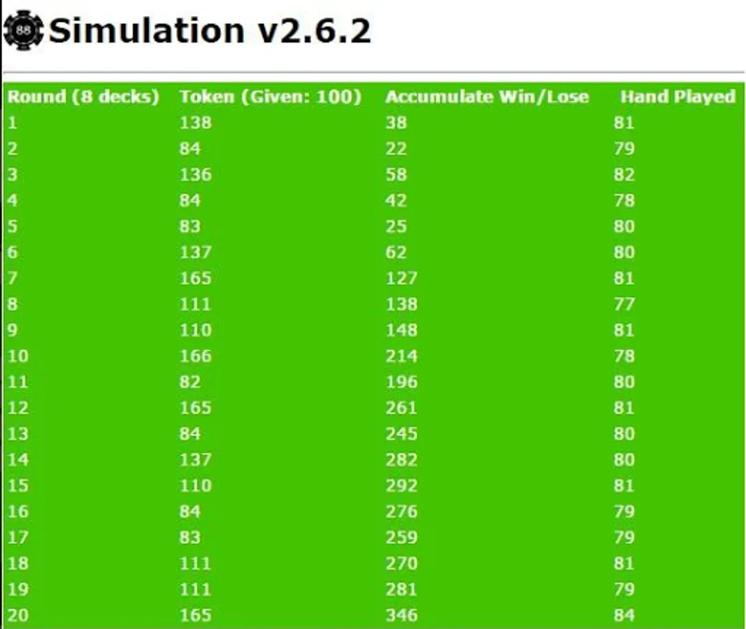 We are happy to announce that Baccarat Predict 88 has passed 100% of all the simulation tests (Please find the statistics in the product images). Please also note that Baccarat Predict 88 works in a "Slow & Steady" strategy, the simulations was performed from playing 20 consecutive Shoes. However, in the real betting environment, the prediction will also work without playing consecutively shoe, it was designed to beat the casino in long run.