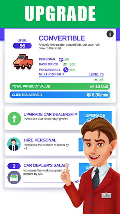 Get ready for an exciting career as a Car Dealer, work as an auto showroom manager and run a cars business simulator in the car tycoon game. Start a new & cars showroom business and become a real car tycoon in car dealer job simulator business game. Buy new cars, place them in the showroom to sell and earn money in car dealer job simulator business game. Grow your Cars business game and sell sedan, sports car, super car in car tycoon game. Start from scratch and build your car dealer business simulator in idle car tycoon game.