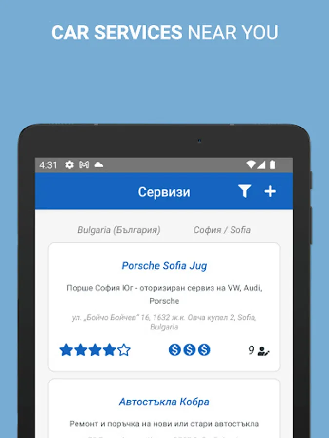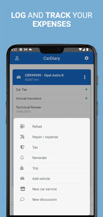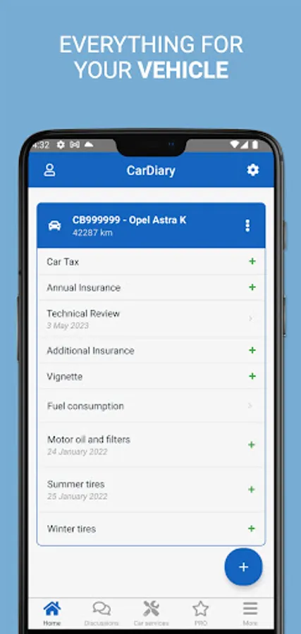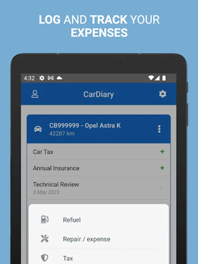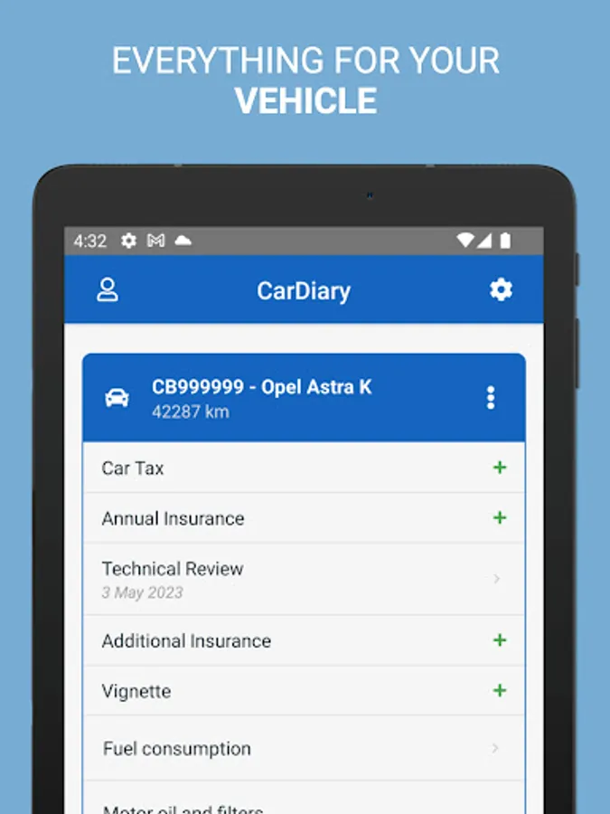 - Add reminders to google calendar and get notified by push notifications about important events related to your vehicle