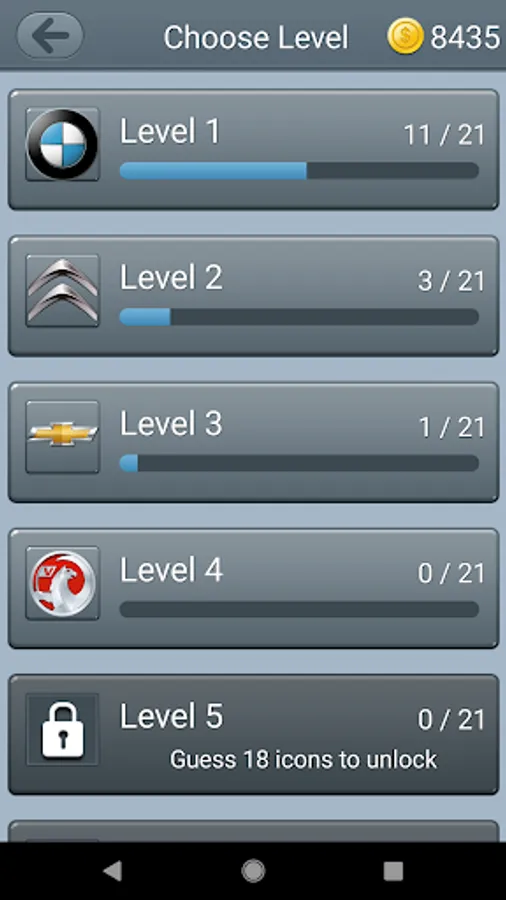 How many of car logos can you recognize? Divided into 12 levels you will find cars logos like Audi, Ford, Ferrari, Peugeot, Opel, Buick, Chevrolet, Mercedes, Volkswagen, BMW, Volvo, Landrover, Porsche etc.