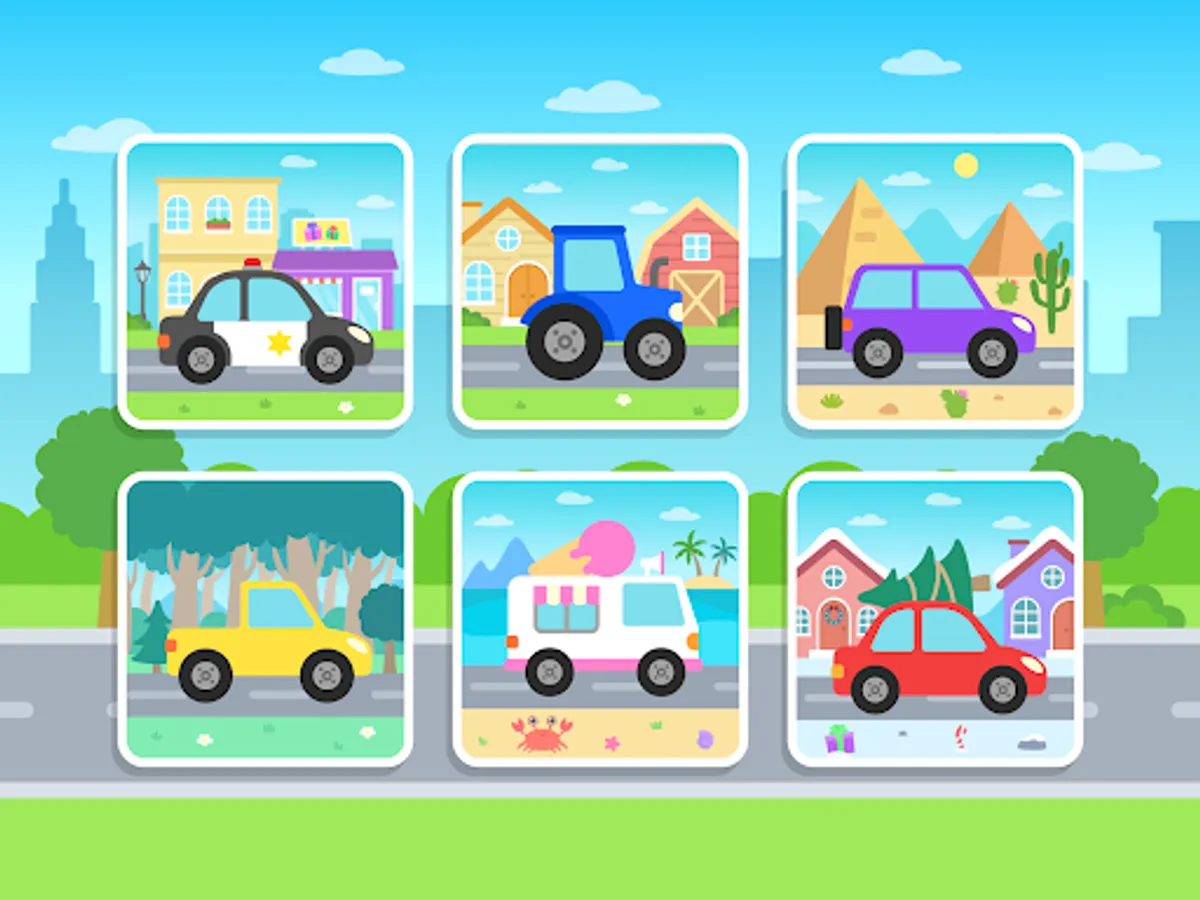 Also, there is a wide choice of cars to choose from. Tap on a police car, an ice-cream truck, a tractor or create your own monster truck with big wheels and start playing. Develop logical thinking, fine motor skills and imagination with your baby by collecting car puzzles, trying interesting interactives and just enjoy playing the game offline!