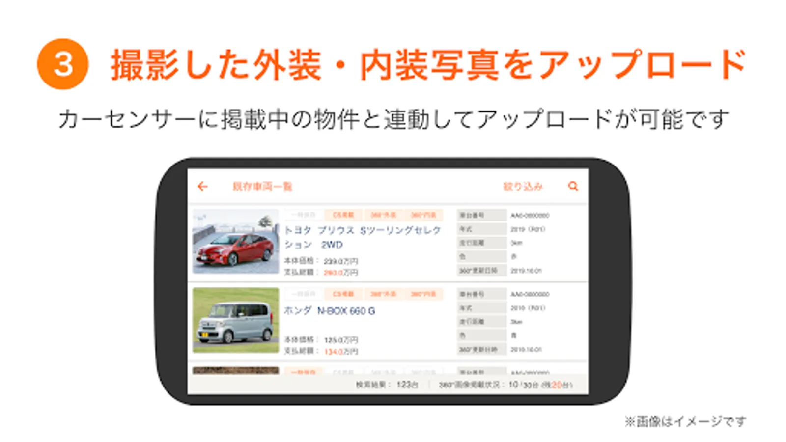 You can link the property submitted to the car sensor submission system (C-match) and the 360-degree image taken from the app.