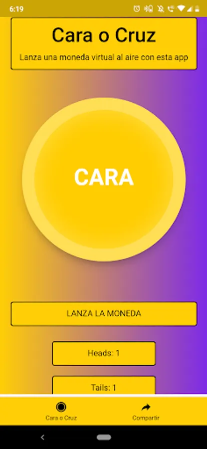 This application allows you to toss a virtual coin in the air to make decisions or test your luck in different areas, such as: in a soccer match in which, once the toss has been made between the captains, supervised by the central referee, the winner will choose a side of the court and the loser will serve the ball.
