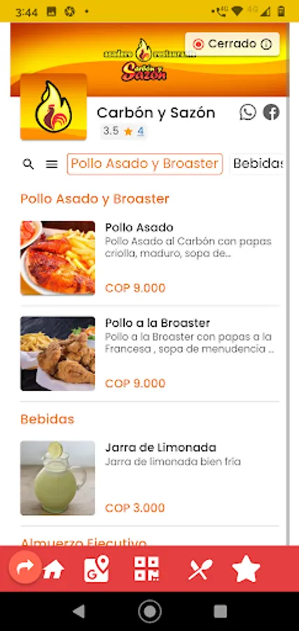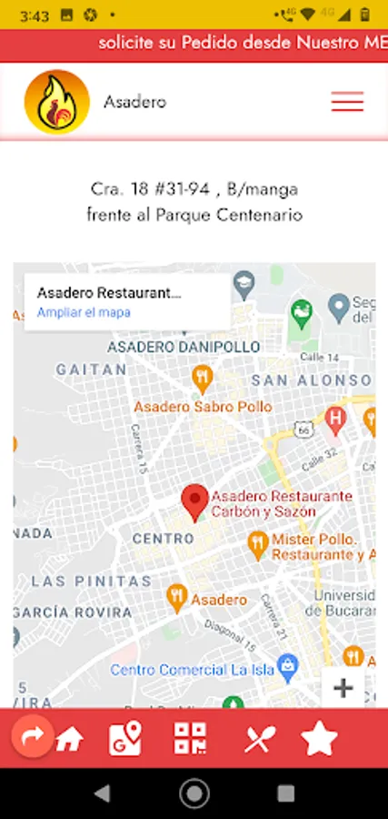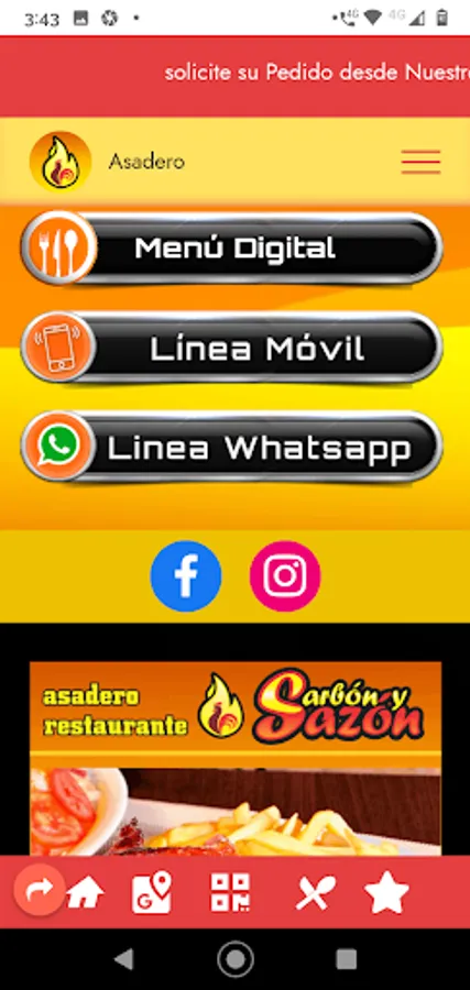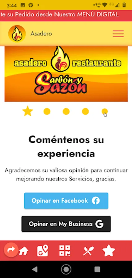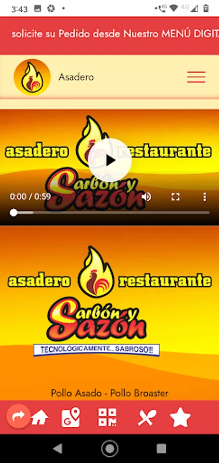Digital Card of the Asadero and Restaurant Carbón y Sazón.