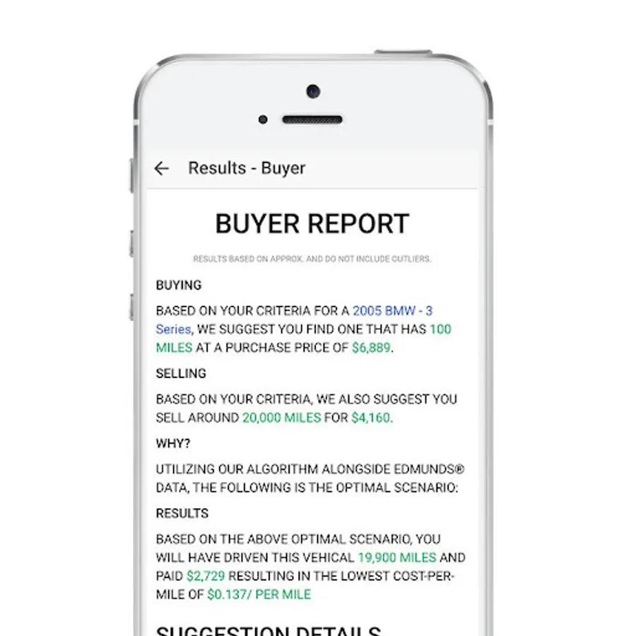 Before you buy or sell your next vehicle, download the CarCurve⢠app to determine a vehicle's CPM (Cost-Per-Mile) calculation & receive a free used vehicle report to help you stay "ahead of the curve" on your current or next vehicle purchase.