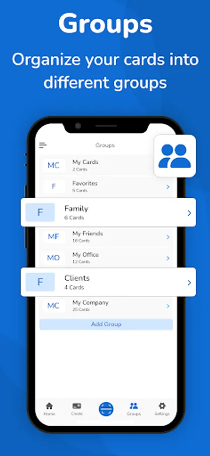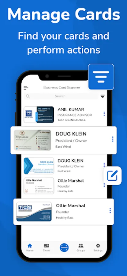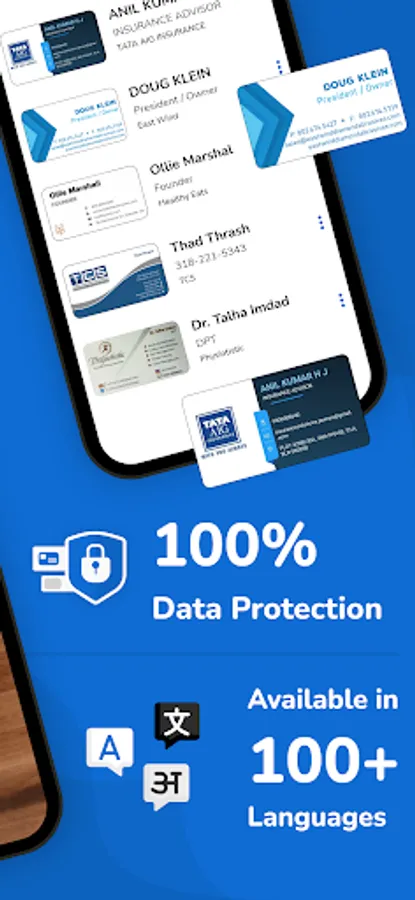 Convert business cards to contacts, organize them with the business card organizer free feature, and share contacts in virtual business cards or digital business card reader for Android instantly with your contacts.