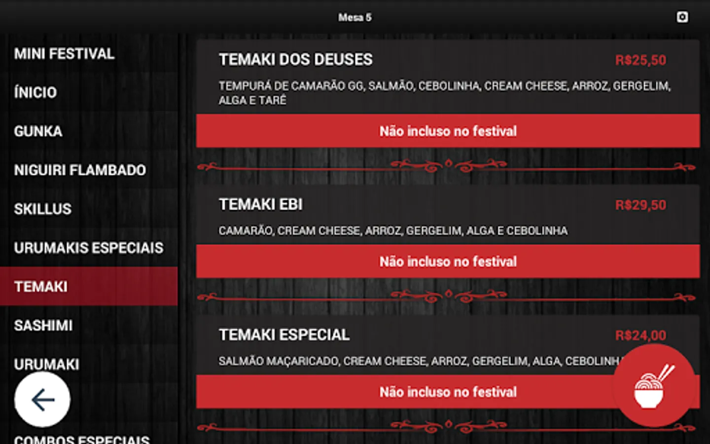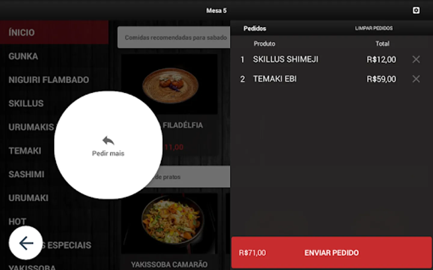 Digital menu, for mobile device, which provides customers with a virtual menu, where orders can be placed directly from the establishment's table. The orders are automatically registered at the central, through the ServeBem software, which, in turn, already sorts the orders, sending them to the production sites.