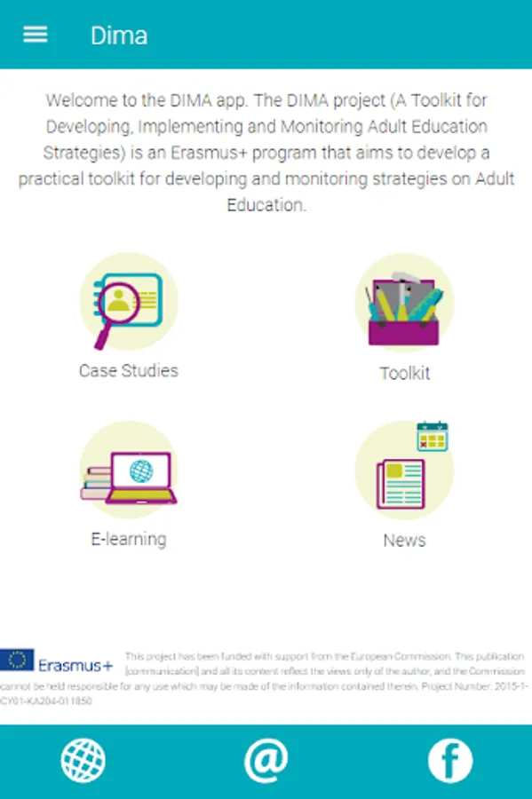 This application was built as part of the DIMA project. It can be used by high level policy makers, area/regional adult education managers, and adult education practitioners all over Europe and the world in order to develop, implement and monitor Adult Education Strategies. The Toolkit for Developing, Implementing and Monitoring Adult Education project (DIMA) aims to analyse the effectiveness of current policies in adult education in Europe and facilitate their development by offering a practical toolkit and a training curriculum.