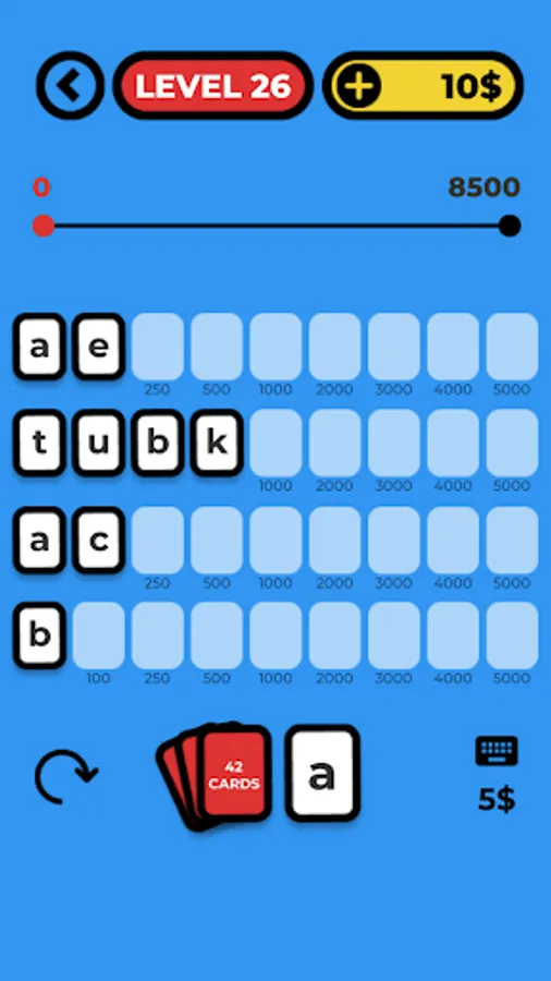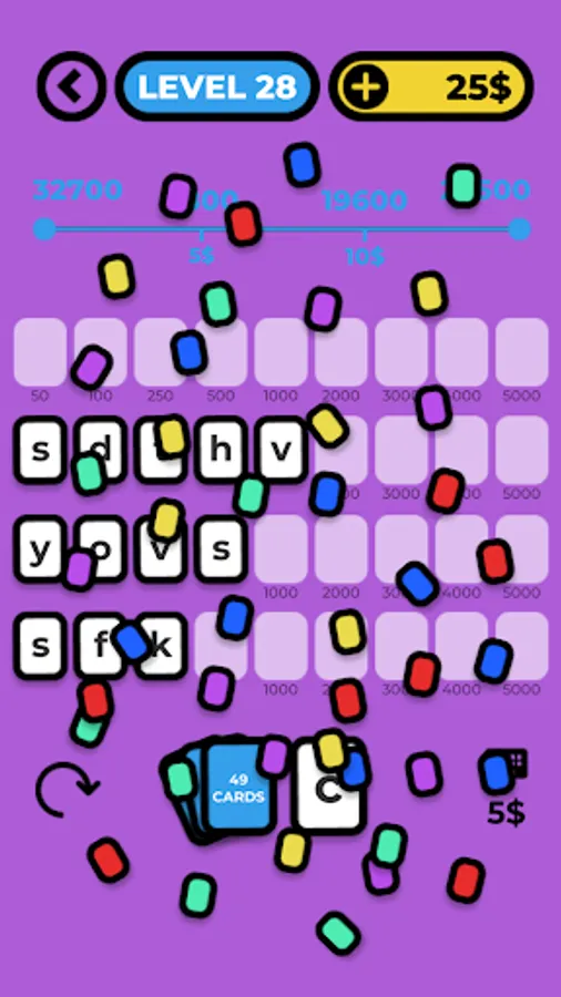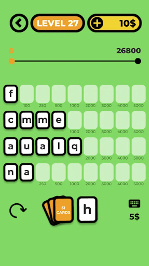 Try to score the required number of points! To do this, you need to collect long words from the cards in the stack!
