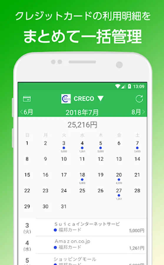 In addition, it comes with an application "CRECO" function that centrally manages various credit cards.