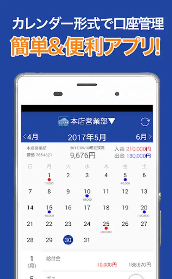 You can easily and conveniently use Yamanashi Chuo Bank account information (balance and details) in a calendar format.
