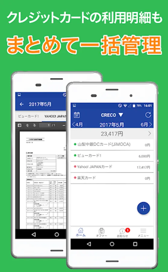In addition, it comes with the app "CRECO" function that centrally manages credit cards.