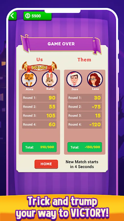 If the team which won the bid, fails to make the points they bid, they will get a negative score equivalent to the bid amount. Game continues until one team reaches 300 points.