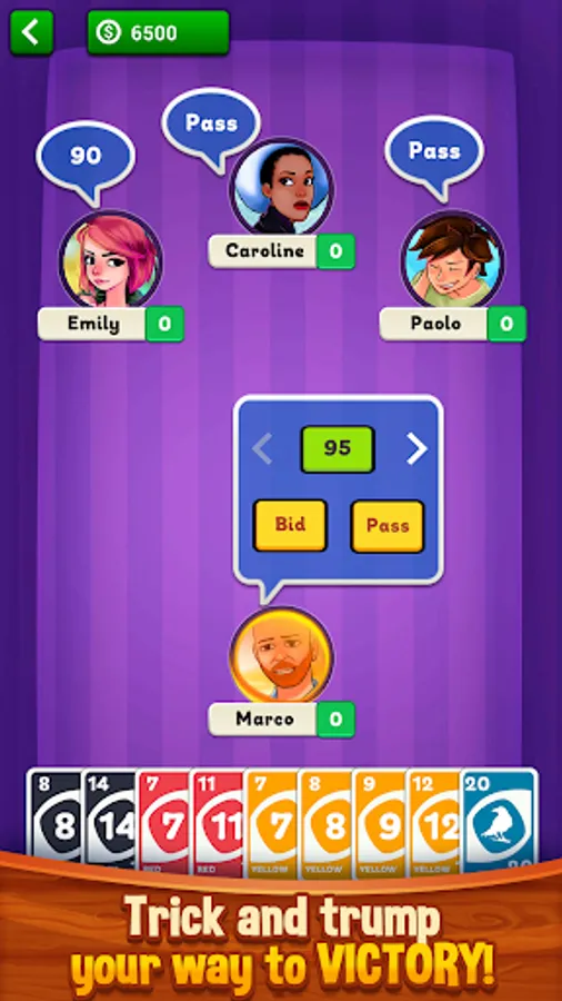 Game is played clockwise. Each player is dealt 9 cards. 5 cards will be kept aside called a Nest. Players have to bid for the points they will make in a round. Bid begins at 70 and the maximum one can bid in a Blackbird game is 120 points. The player who wins the bid will get to decide the trump suit. The bid winner can also exchange the cards from the Nest.
