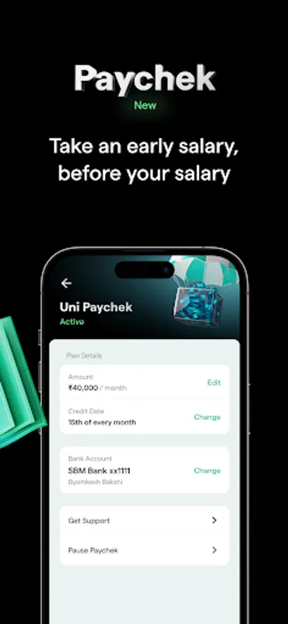 Receive a fixed credit of up to ₹100,000 every month. Sent directly to your bank account. Just like a salary before your salary.