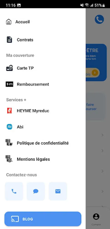 Find all your services related to your contract from the Mutuelle HEYME application, where you can:
