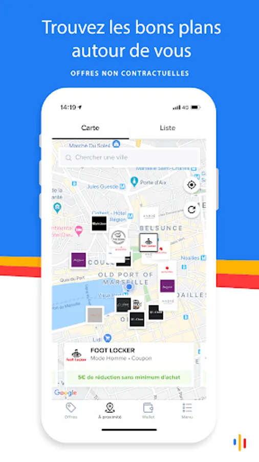 You can take advantage of "headlines", geolocated offers or search by category (well-being, leisure, catering ...)