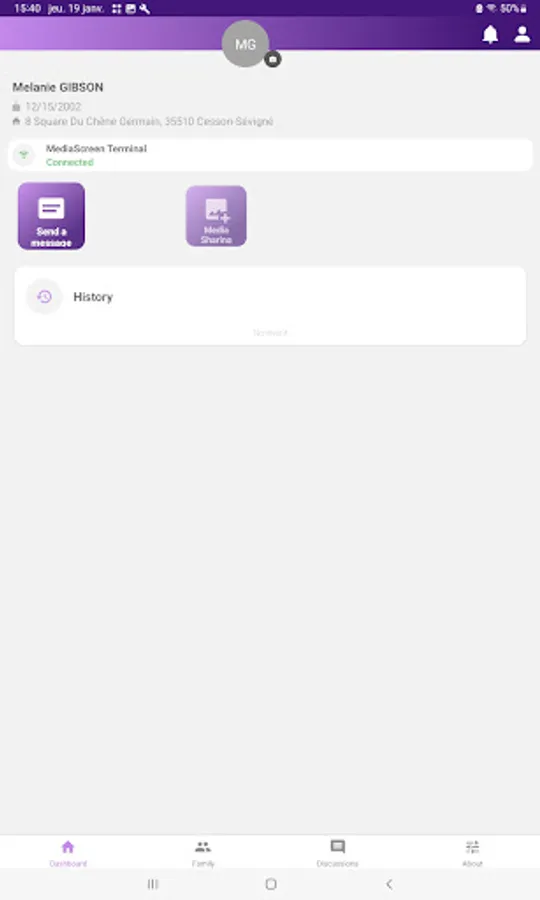 This application aims to maintain the social link between a patient, inside or outside the walls of a medical facility, and his family circle.