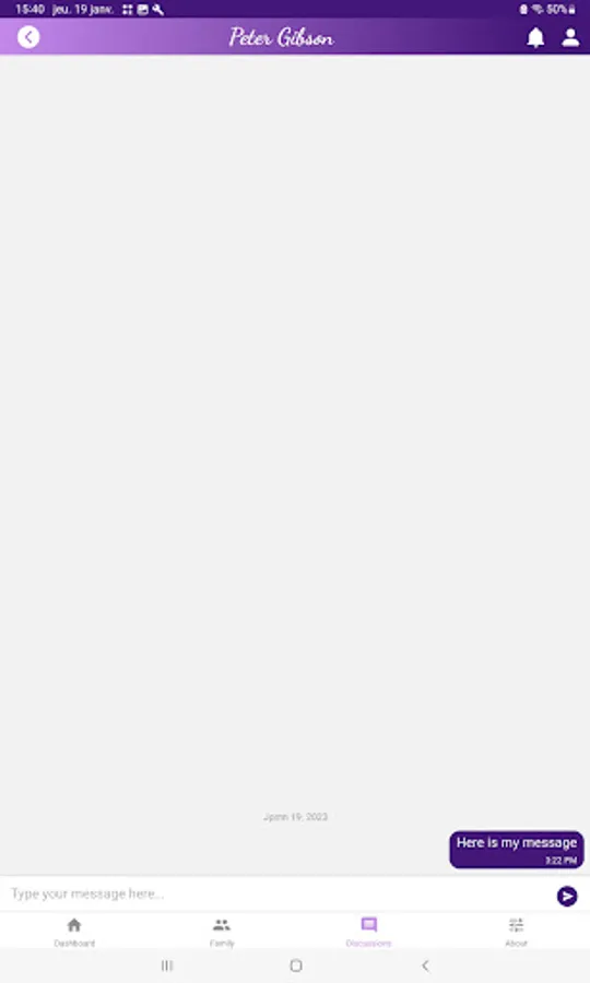 The application allows to chat between members of a defined family community as well as to share content (video, photos).
