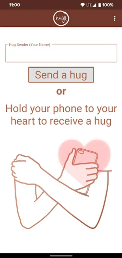 To send a remote hug, enter your name and the name of a loved one and click send. No data will ever be collected about you or the hug receiver by our app.