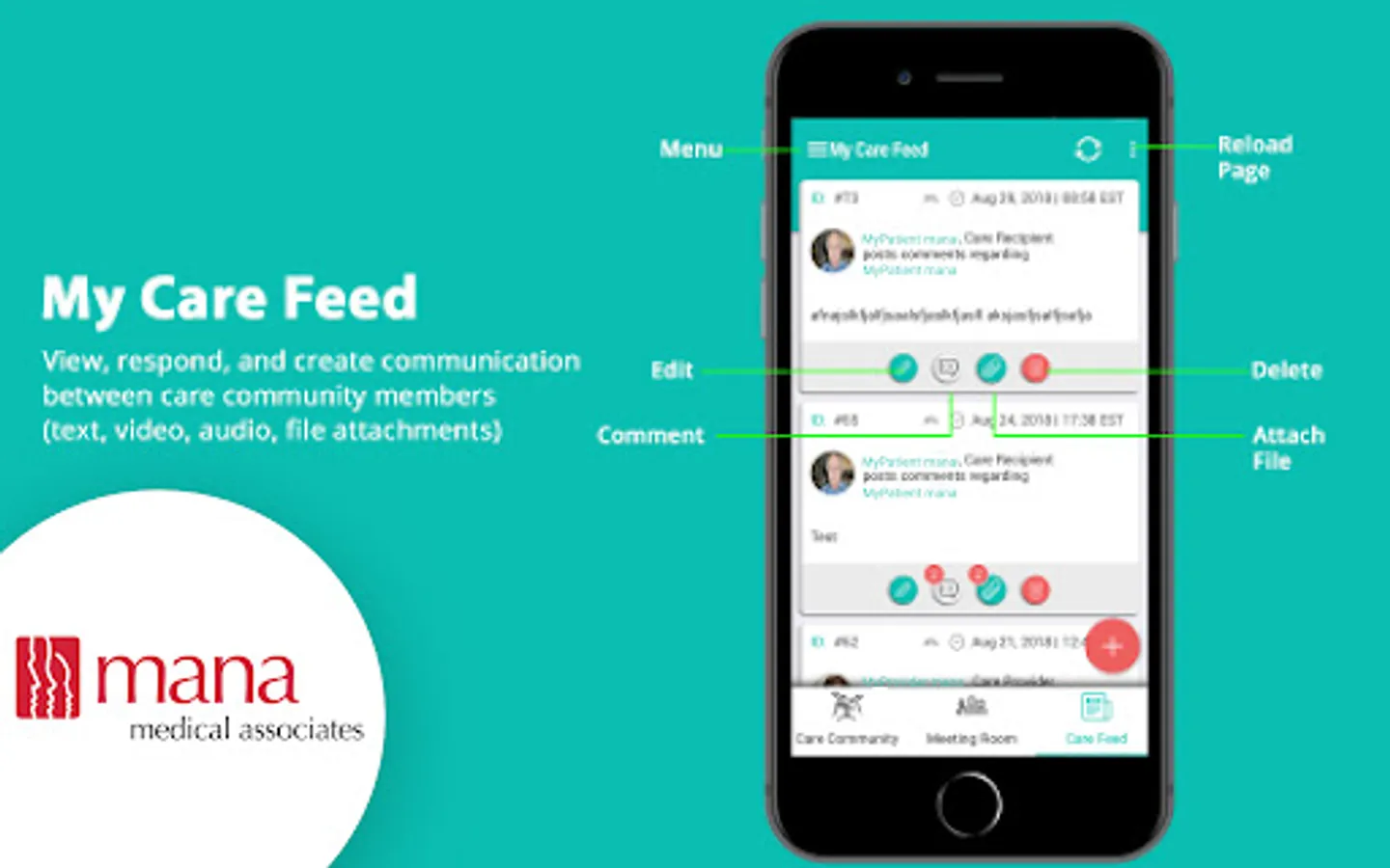 ◦ See the ongoing Facebook-style secure message feed from all your patients and caregivers