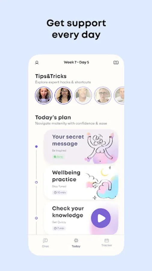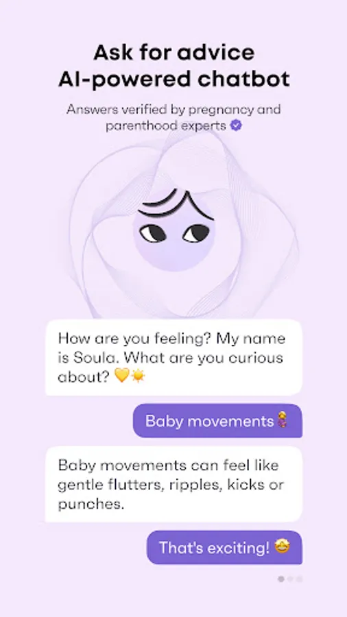 Find answers to any possible questions 24/7. Supported by the world's most powerful GPT3 technology, Soula’s chat was crafted with insights from trusted maternity experts like midwives, doulas, and parenting coaches, drawing from the collective experience of 30,000+ moms.