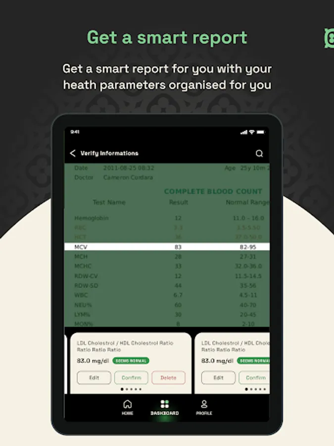 TKC generates and maintains a health profile for the user in a smart and intuitive format, including past trends on body vitals and a ready-to-use repository of all past lab tests performed by the user. TKC enables tracking of important health information, such as medical conditions, medications, and allergies, in one central location. This information can be used to identify potential health risks, facilitate early diagnosis of health issues, and make informed decisions about health and wellness.