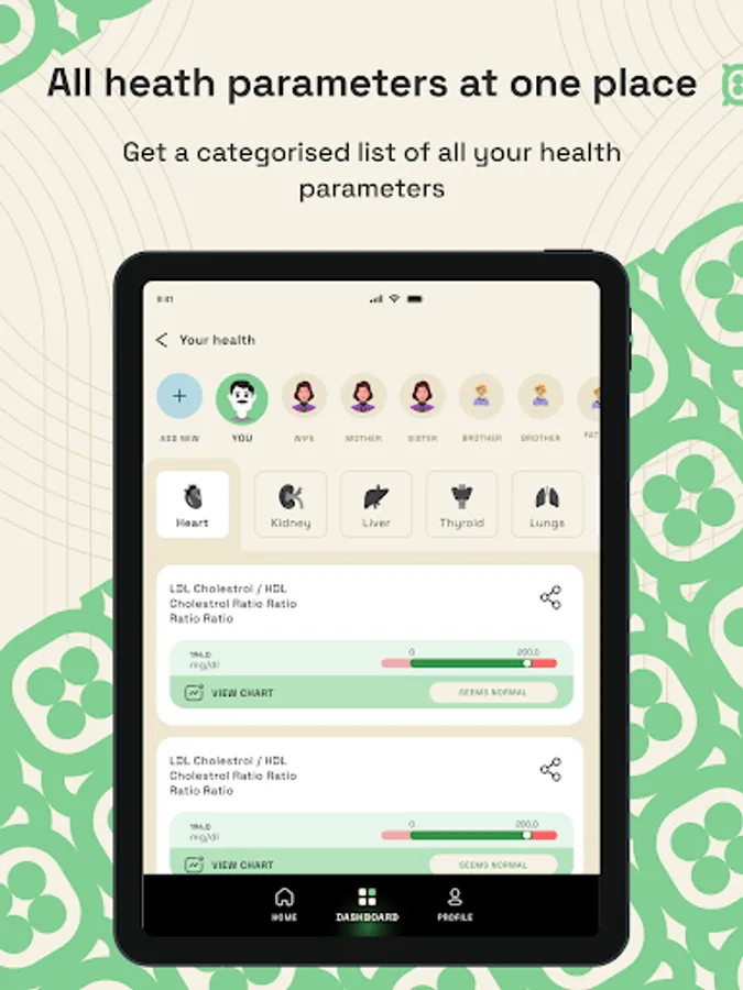 All the vitals in your medical record such as Blood Pressure, Diabetes Level, Cholesterol Level, Blood CBC data, Lipid Profile, etc. is converted into date wise tracking establishing a historical trend for easy monitoring. Such information can easily be viewed and shared in the of Smart Cards/Smart Reports at user’s discretion.